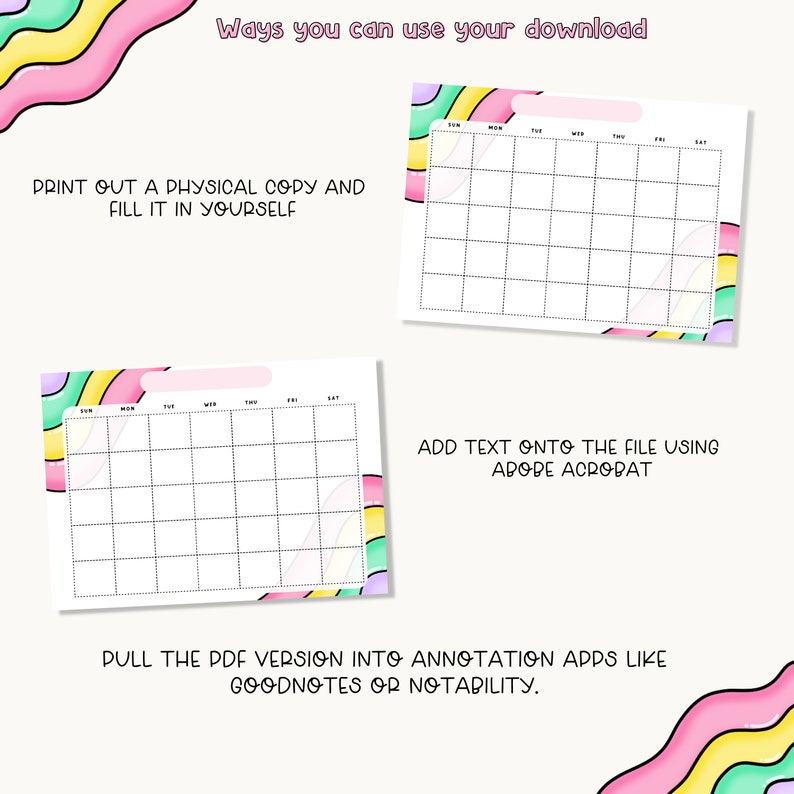 One of the terrific methods to find free and high-quality printable rainbow monthly calendar downloads is to dawn by searching online. The internet is home to a wide variation of websites that offer free printable rainbow monthly calendar downloads, as well as templates, coloring pages, and more.